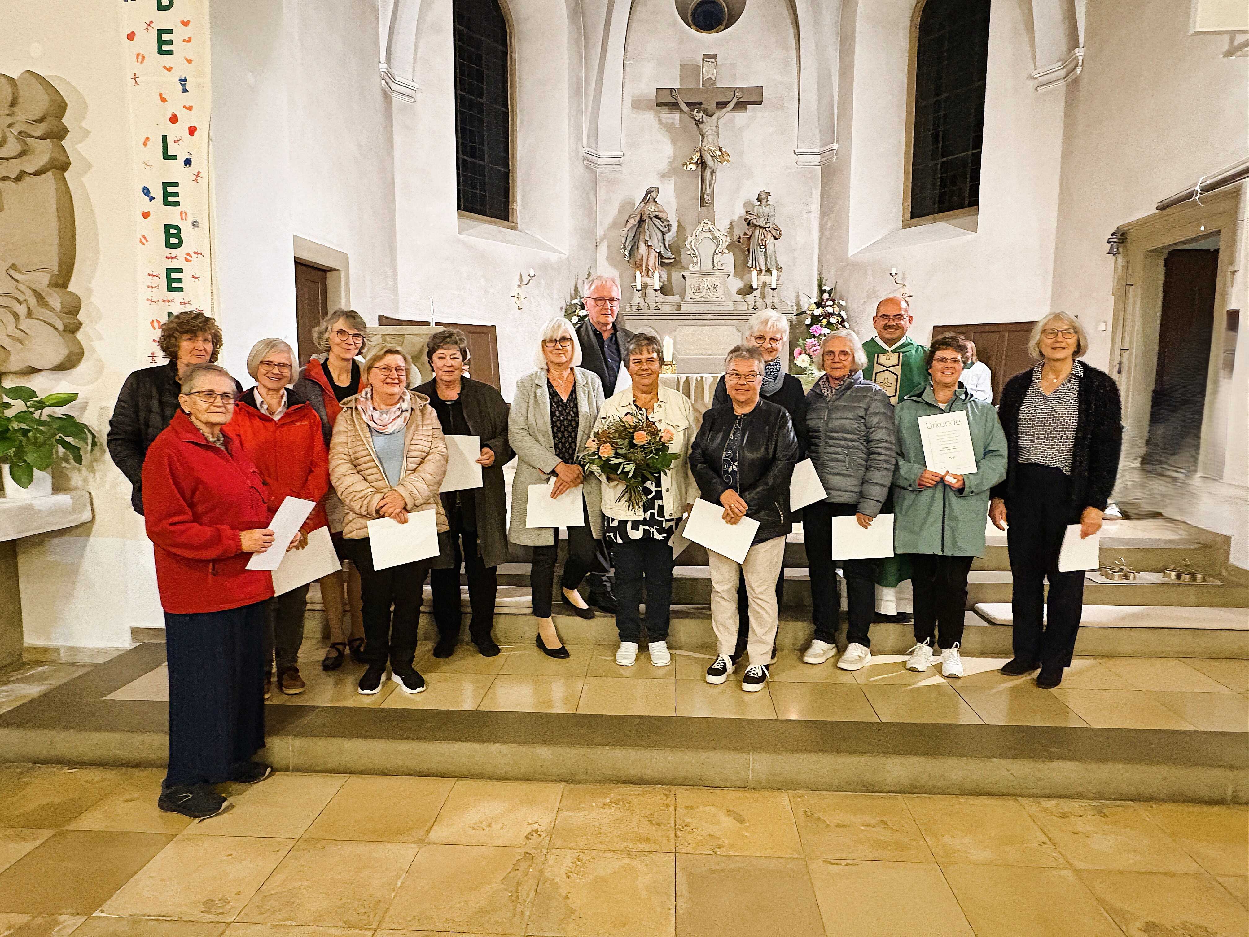 Pfarrer Bayer bedankte sich herzlich für das Engagement des Büchereiteams in den vergangenen Jahren. Am Schluss des Gottesdienstes übergab Bernhard Schweßinger, Leiter des Bereichs Medien im Bischöflichen Ordinariat, Ehrenurkunden und Ehrenzeichen des Sankt Michaelsbunds, dem Dachverband der kirchlichen Büchereien in Bayern, an die Mitarbeiterinnen der Bücherei. Das Ehrenzeichen erhielten Christa Lutz und Cäcilia Walter. In Silber, für mehr als 10 Jahre Mitarbeit, erhielten es Gisela Bach, Gisela Ebhardt, Gisela Heinze, Martina Joneitis, Jutta Melzer, Rita Pfenning, Andrea Steinberger, Elisabeth Tiller und Ingrid Wagenbrenner. Das Goldene Ehrenzeichen für mehr als 25 Jahre ehrenamtlichen Dienst erhielten Maria Bauer, Sieglinde Bieber, Birgit Blum, Claudia Heinrich, Heidi Heinrich, Sonja Heinrich, Marion Koeppe, Renate Müller, Bernadette Nuber und Birgit Weisenberger.