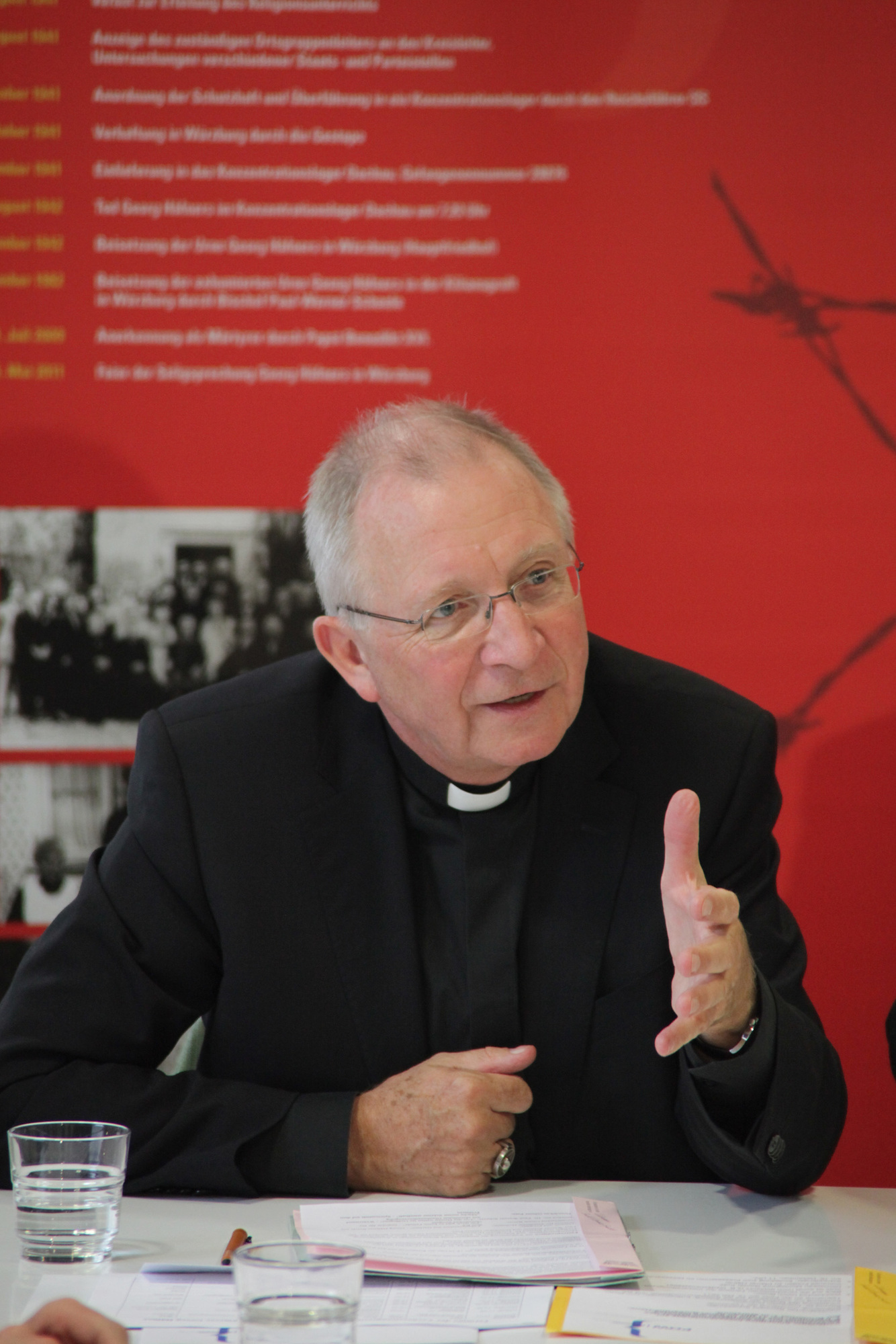 Der Bischof lud alle Katholiken im Bistum Würzburg zur Vorbereitung und zur Feier der Seligsprechung ein. Das Motto versuche, Häfner so darzustellen, wie er sich den Menschen von heute präsentiere. Als einfacher Mensch habe Georg Häfner ein offenes Ohr für die sozialen Fragen seiner Zeit gehabt. „Er war ein Priester, der seinen Auftrag in der unmittelbaren Begegnung mit den Menschen sah.“ Häfners Briefe aus dem Gefängnis und aus dem Konzentrationslager Dachau zeigten, wie er den Weg der Nachfolge Jesu verstanden habe. Der künftige Selige sei ein tiefgläubiger Mensch gewesen. Konsequent sei er im Konzentrationslager seinem Gewissen gefolgt, unterstrich Bischof Hofmann.