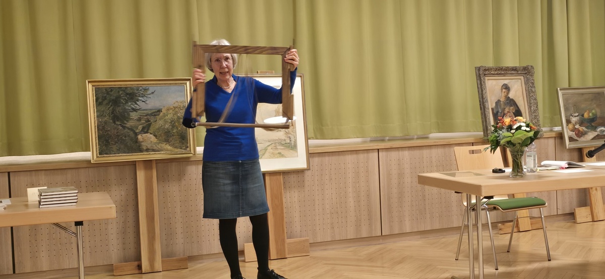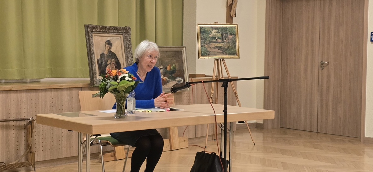 Frau Dr. Elisabeth Schmitt war mit einer Lesung aus ihrem Buch "Wege in ein gelingendes Leben" zu Besuch im Pia Fidelis, Obernburg. Der Inhalt des Buches soll hier gar nicht verraten werden, nur ein bisschen drumrum: Die Bilder in dem Buch stammen von August Kutterer, ihrem Großvater. So rein objektiv und von außen war sein Leben vielleicht nicht "gelingend": Soldat im 1. Weltkrieg mit 16 Jahren, Studium an der Kunstgewerbeschule, Hochzeit und Kinder, 6 Jahre Soldat im 2. Weltkrieg und Kriegsgefangenenschaft, acht Jahre danach unerwartetes Herzversagen und Tod. Aber dennoch: die Bilder haben eine Aussage und die ist nicht negativ und pessimistisch. Seine Enkeltochter hatte mehrere Bilder mitgebracht, die gemeinschaftlich interpretiert wurden: "Der Horizont ist weit, der Himmel offen. Licht und Schatten, aber am Horizont ein Ziel. Tiefe, Ruhe, Dynamik, Unendlichkeit".